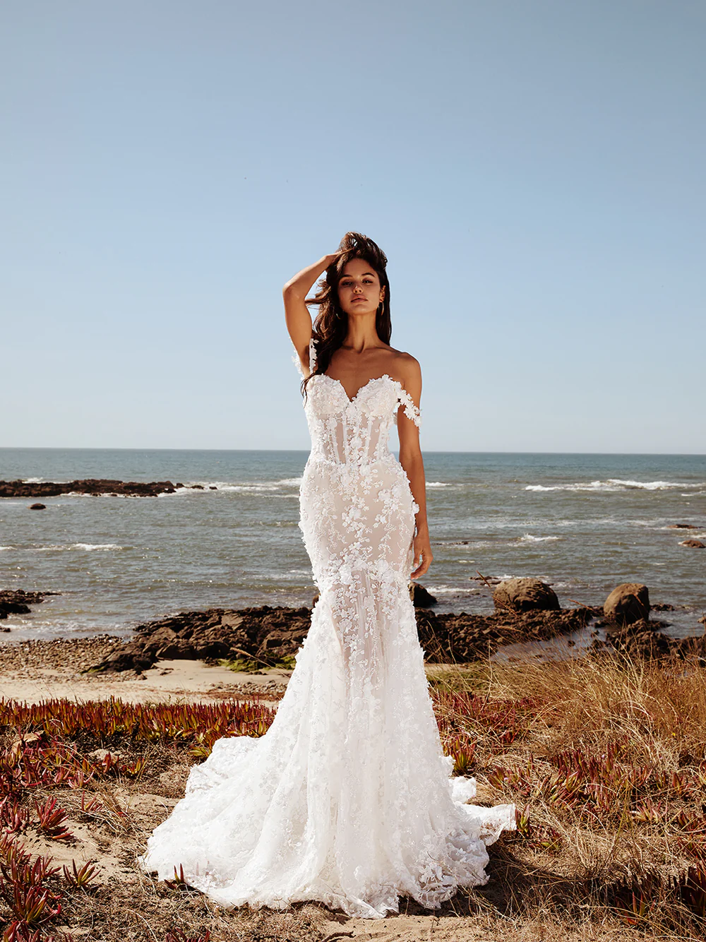 What’s super romantic, frames your gorgeous face and shows off your neck and collarbone? An off-the-shoulder wedding gown, of course! A timeless favorite of brides, an off-the-shoulder neckline is the perfect combination of elegance and sophistication with a hint of sexy.