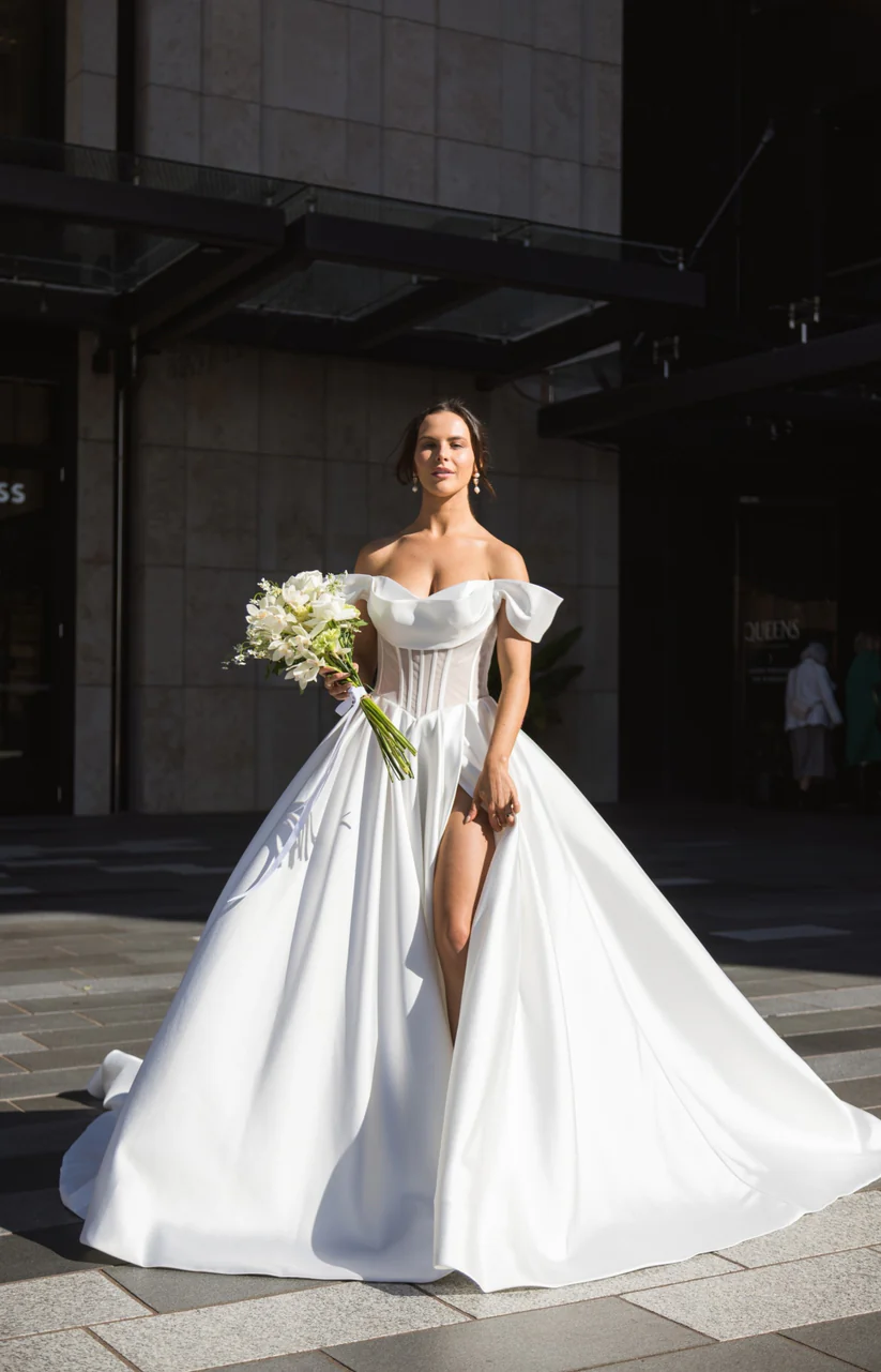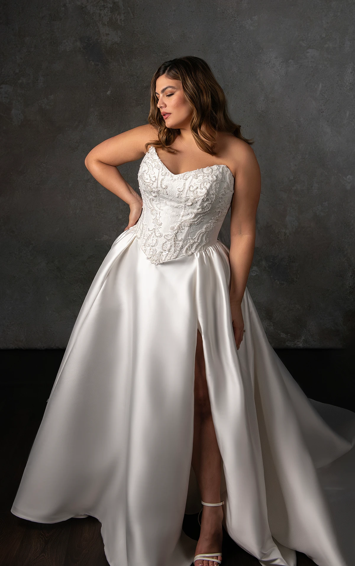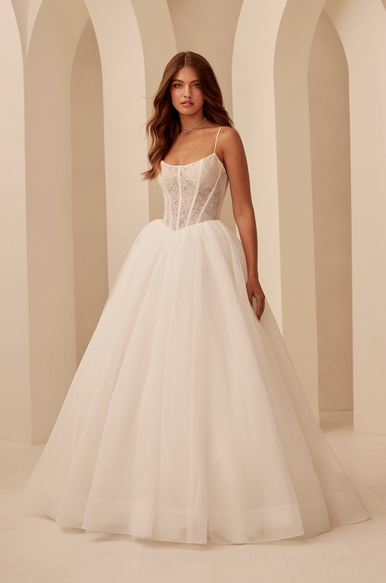 Ballgowns, or full skirt gowns, represent the quintessential traditional wedding dress. With their full skirt and dramatic silhouette, they are what fairy tale dreams are made of!