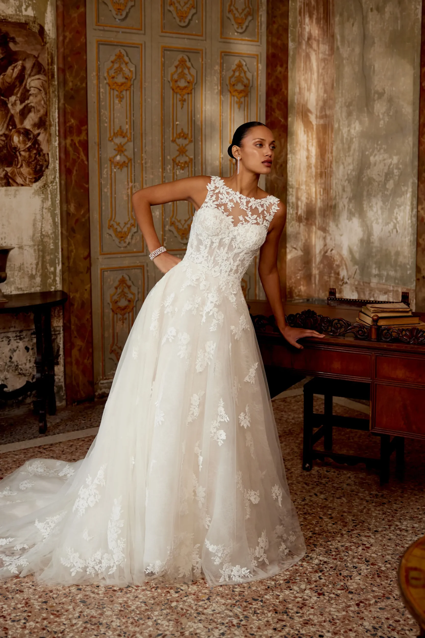 Whether you’re looking for an A-line, sheath, trumpet or ballgown style, a high neckline wedding dress has an undeniable elegance. Designs range from modern minimalist to traditional with every detail imaginable! There is truly something for everyone!