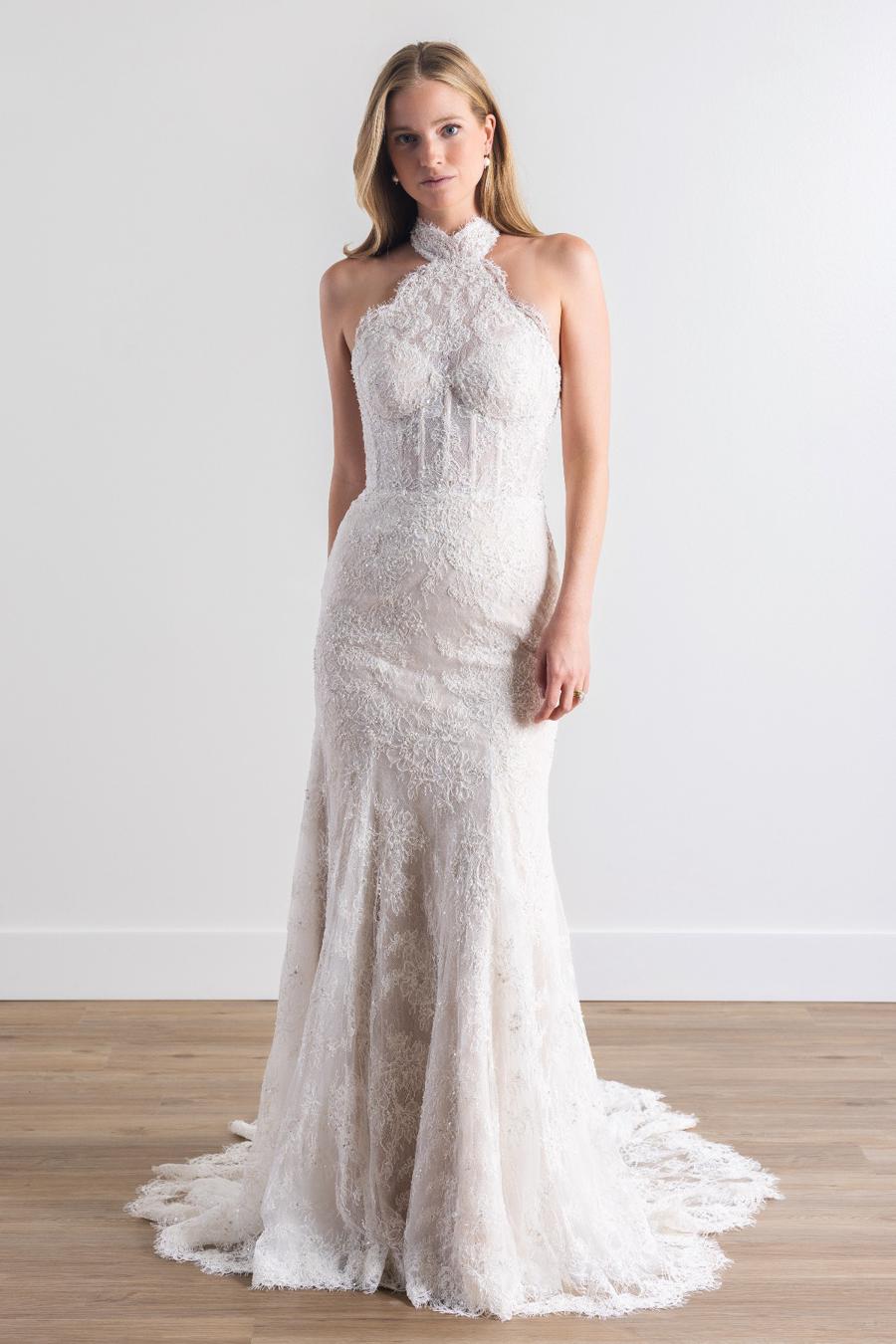 Furthermore, a halter elongates your neck and brings extra emphasis to your beautiful face. Halter wedding gowns are also super flattering on all body types and come in a wide variety of silhouettes. Choose from sleek and chic styles to romantic lace and beading.