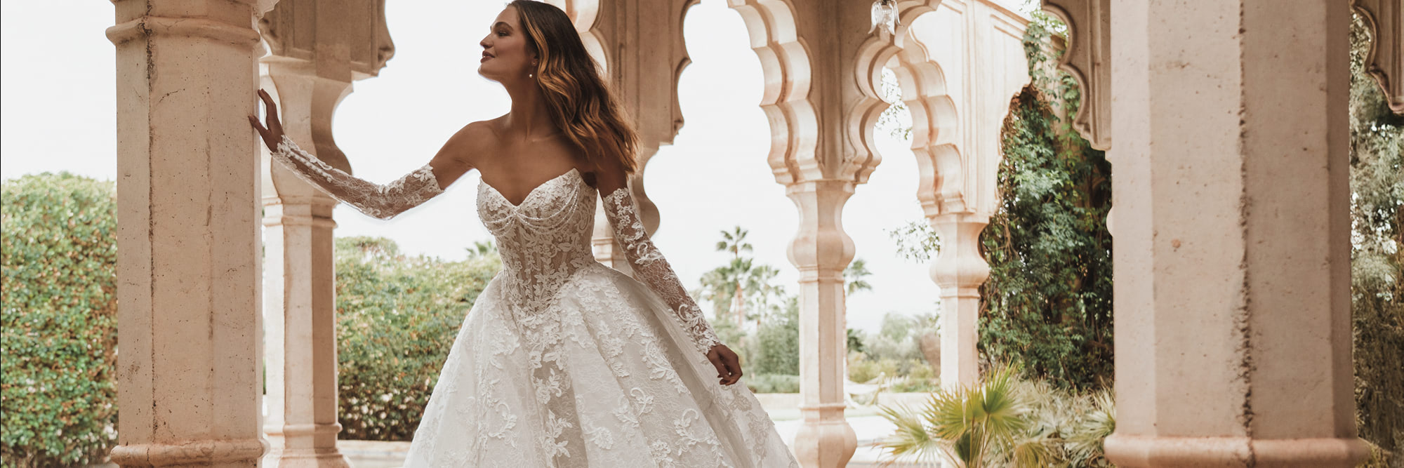 Enzoani is the epitome of couture bridal—where bold design meets timeless beauty. Known for show-stopping silhouettes, intricate lace, and sculpted fit, each gown is crafted to make you feel unforgettable, elegant, and utterly in love.