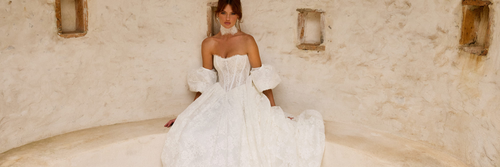 Made with Love creates modern, timeless bridal gowns for natural beauties. Known for daring necklines, corset-inspired bodices, and luxurious fabrics like French Crepe and Mikado, the collection blends current trends with classic elegance.