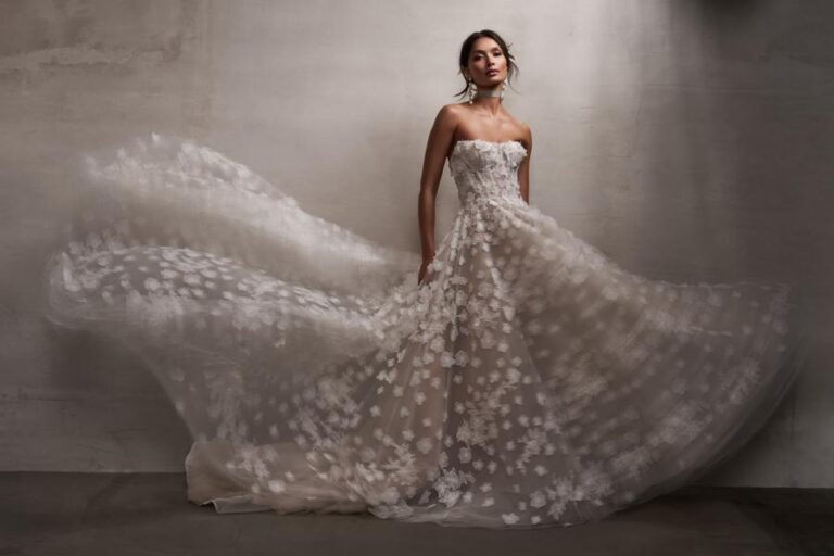 Brides are loving the organic feel of nature-inspired wedding gowns. Dresses that evoke the very essence of the outdoors not only speak to your personal style, but sets the whimsical tone for your big day. We are talking fanciful florals, botanical lace, embroidered vine patterns and more. Of course garden weddings, beach weddings or just about any outdoor setting are especially fitting for this look, but any venue will work for these nature-inspired works of