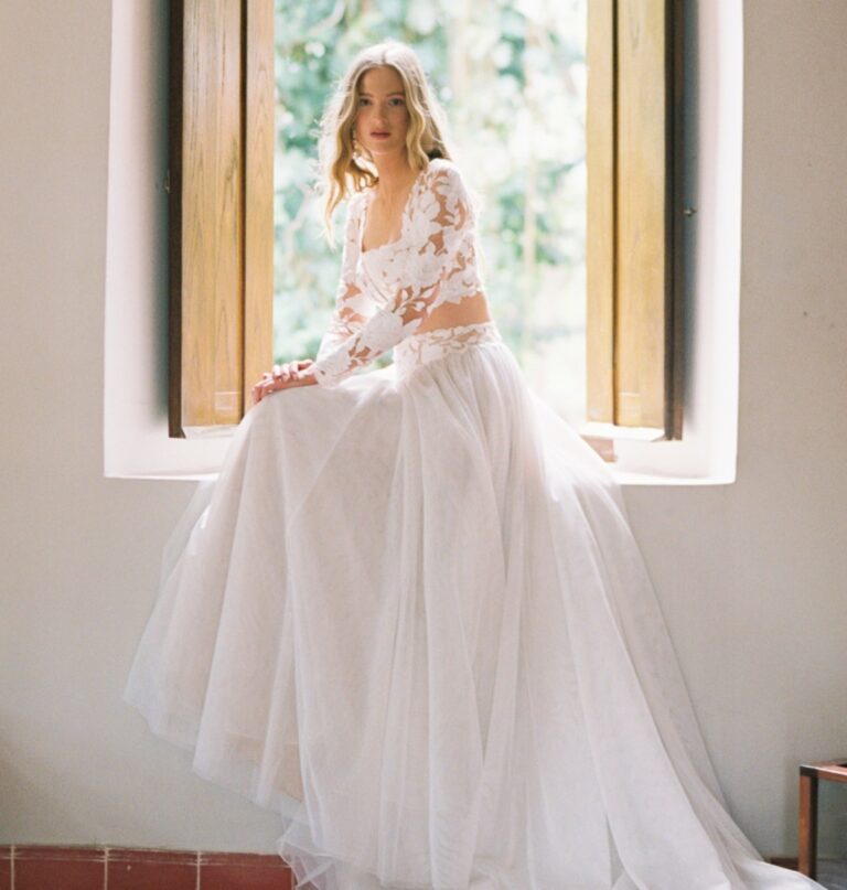 What’s better than finding the wedding dress of your dreams? Finding TWO ways to wear it! When a bustle just won’t do, don’t fret, we have you covered. A wedding dress with detachable train or overskirt is the perfect way to go from that head-turning dramatic walk down the aisle to your reception with ease. The designs are playful, diverse and perfect for the bride who wants the best of both worlds. Check out some