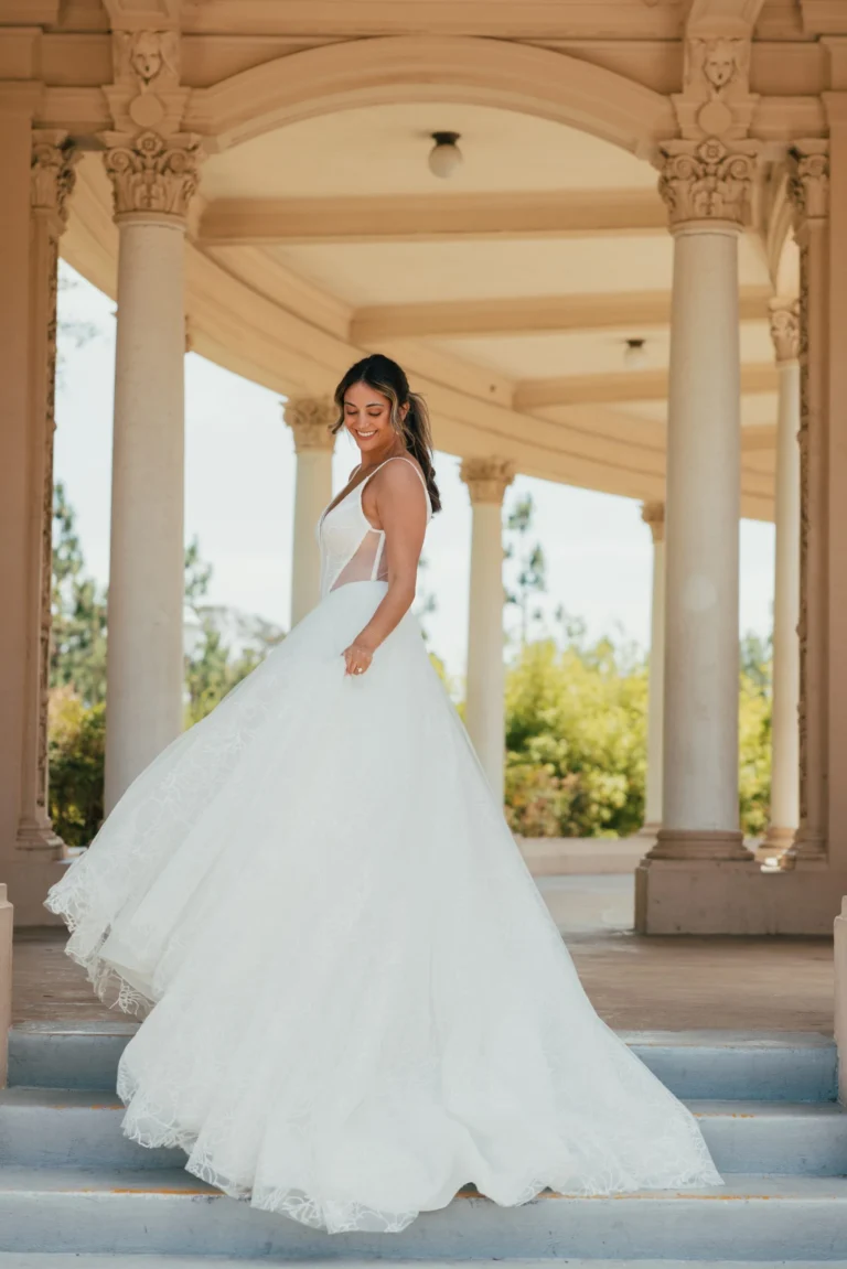 For the bride looking to make a bold, sexy statement on her wedding day, a plunging neckline or plunging back could be just the thing! Plunging simply means a deep V design. And, how low you go is up to you! Made with Love Bridal has mastered this look so very eloquently, keeping every detail in mind and giving brides so many gorgeous options. Whether you want a dress with loads of sparkle, intricate lace