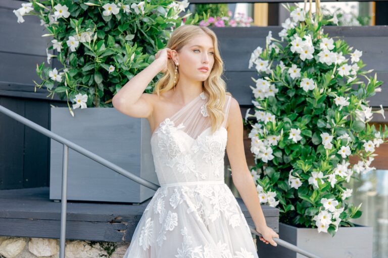 An illusion wedding dress features a thin, sheer fabric that is often adorned with beading, lace, or some kind of applique. Illusion fabrice often mimics the look of bare or nude skin. That may sound a little daring for some, but no worries! There are many ways to wear an illusion wedding dress, from sexy to super subtle. Illusion wedding gowns are available in long sleeves, short sleeves, with the sheer detail on the front,