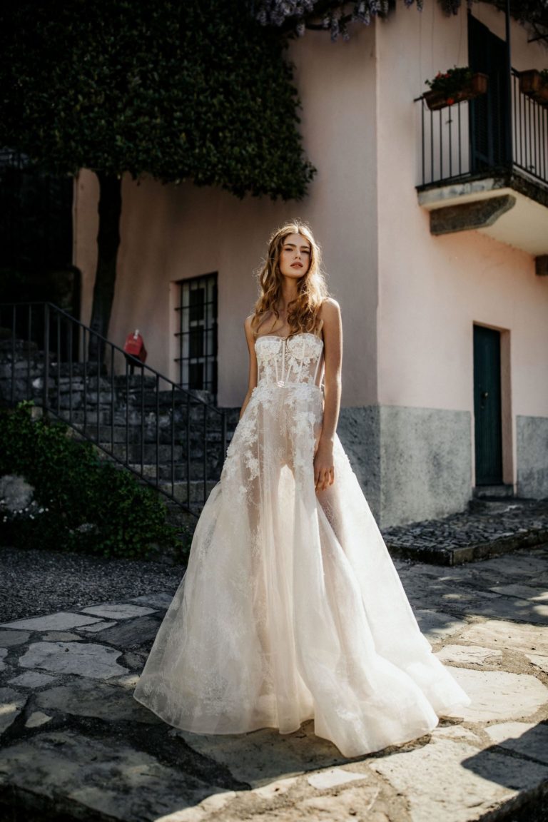 Strapless wedding gowns are iconic, and their popularity amongst brides never fades. Why? A strapless cut is super flattering and oh-so versatile. They can be found in every bridal silhouette and for every bridal style. Plus, they work beautifully for both casual and formal weddings. And, although they may be thought of as a traditional choice, these days, designers have given this classic cut a modern twist by incorporating sexy details like plunging necklines, sheer