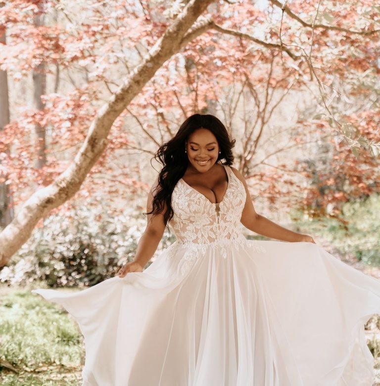 Tis the season for warmer weather and budding blooms! And what else comes to mind? Floral wedding gowns, of course! These whimsical, ethereal dresses are show-stoppers, but keep in mind they are NOT just for the spring and summer. You can wear a nature-inspired gown any time of the year. So, if you love flowers, are a boho bride, or just want a super romantic or fairytale vibe to your bridal ensemble, you’ve come to