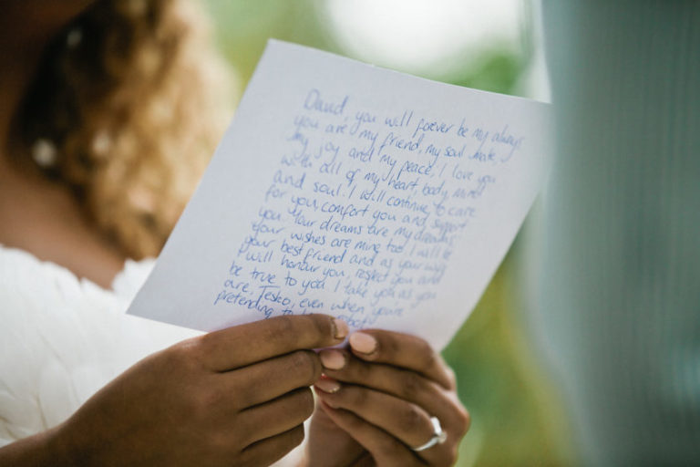 Writing your own vows is so personal, heartfelt, and let’s face it… scary! The thought sends some into a panic–writer’s block is real, especially when it comes to something so important. The bottom line is that both of you want your words to be as perfect as possible. But how do you fit so much emotion and so many thoughts in a compact yet impactful way? We have some tips that may just help you