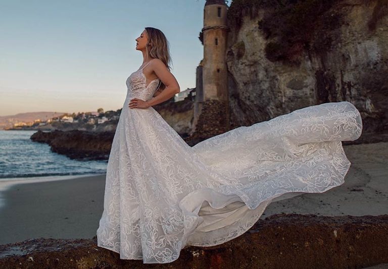 Let’s face it, wedding gown trains bring ALL the drama! They can completely change the vibe of not only your look, but also the feel of your overall wedding day. Add whimsy, regality, or be a real-life princess as you flow past your guests with your statement train trailing behind you. An ornate train also makes for some spectacular photo opps! Whether you like a shaped train, full train, tulle train, lace train, or beaded