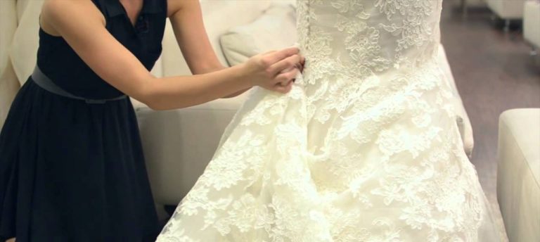 What is a bustle? In a nutshell, a wedding dress bustle is a fastener or set of fasteners attached to the back of your dress that lift your wedding gown train up off the floor in a decorative fashion. The fasteners can be loops, buttons, hooks, eyes, and ribbons. There are different styles of bustles, and all are of two main types: the under bustle and the over bustle. An over bustle is made up