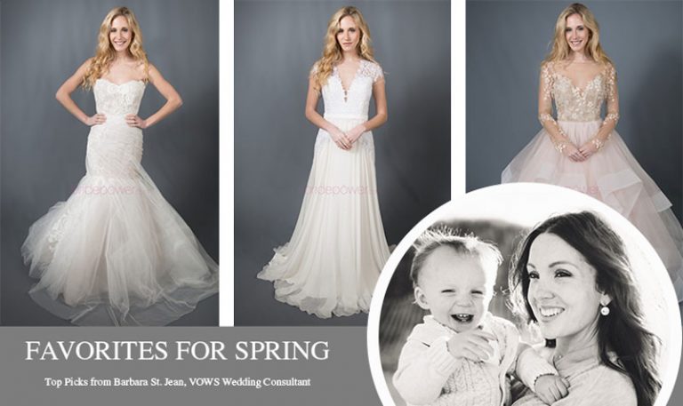 It’s officially spring! We are thrilled to be receiving deliveries of new designer gowns and are anticipating a busy season as brides plan for upcoming nuptials. Barbara St. Jean is an experienced bridal consultant and buyer for VOWS. You may recognize her from the TLC reality show, I Found the Gown. As an industry expert, we always love to see what wedding dresses make Barbara’s list of favorites. Are you looking for the dress of your dreams? Contact Vows or