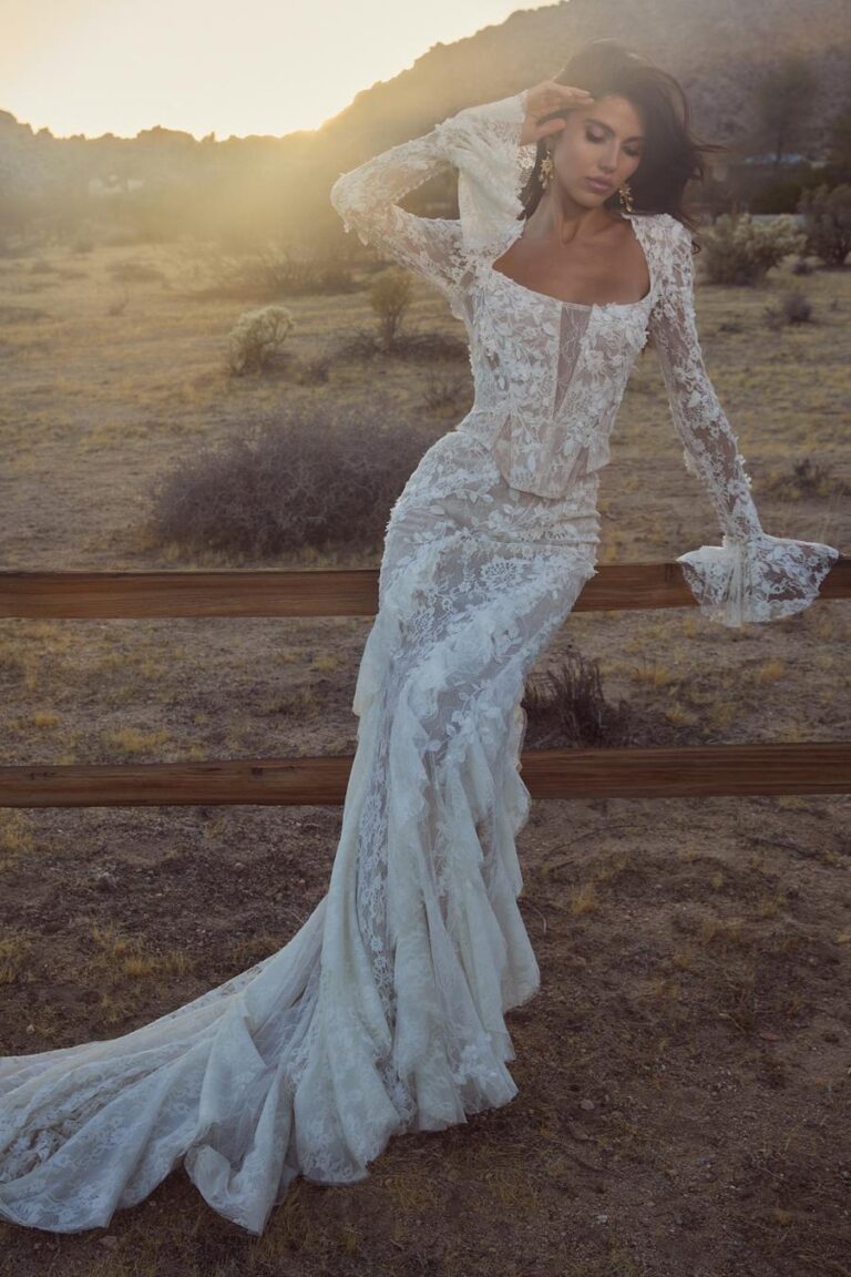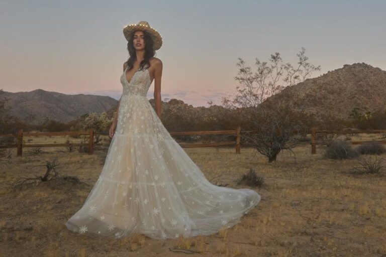 There’s nothing quite like the dreamy and whimsical feel of a bohemian wedding gown. Many boho dresses are vintage-inspired, perfect for the bride looking for a unique vibe that truly shows her free spirit and love of days gone by.. Featured below is a bridal fave of ours, Watters, which includes Willowby and WTOO. Known for their feminine whimsy, they still manage to stay effortless and elegant. Think intricate lace, light-as-air fabrics, soft tiers, flowing