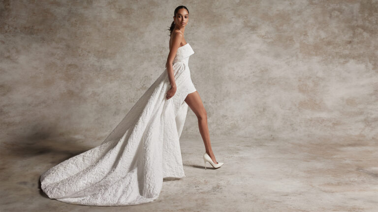 What better way to make a statement and feel a little sexy on your big day than to choose a wedding dress that shows a little (or a lot!) of leg? Designers are loving this trend and are featuring flirty high slits into dresses of all silhouettes–ballgowns, sheath gowns, A-lines and more! How much leg you want to show is up to you. For full on va-va-voo, the slit can be thigh high. Or, if